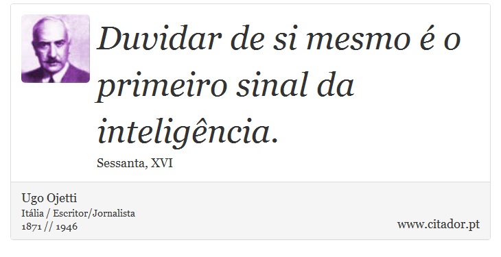 Duvidar de si mesmo é o primeiro sinal da inteligência. - Ugo Ojetti - Frases