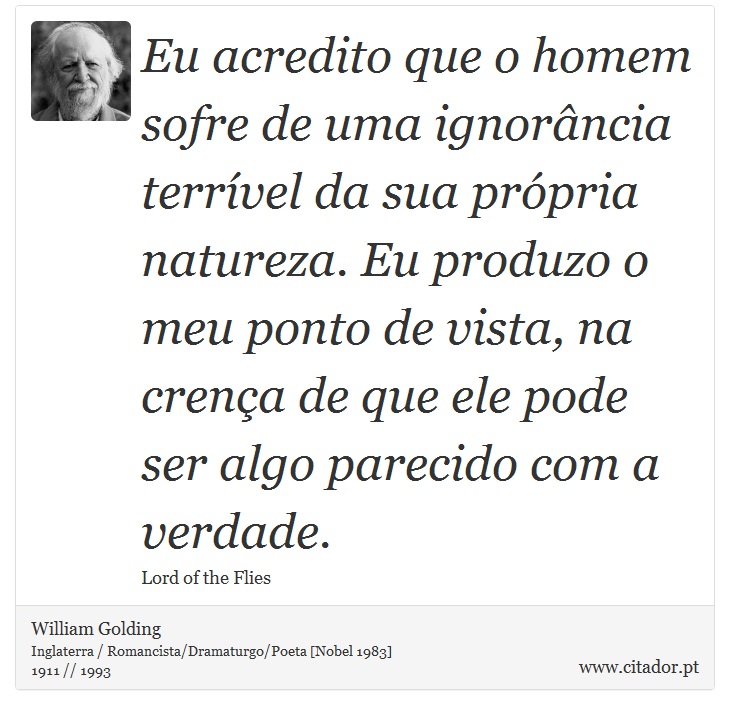Eu acredito que o homem sofre de uma ignorância terrível da sua própria natureza. Eu produzo o meu ponto de vista, na crença de que ele pode ser algo parecido com a verdade.